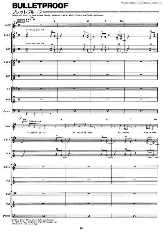 Bateria, Contrabaixo, Guitarra, Tablatura, Voz / Rock / Difícil