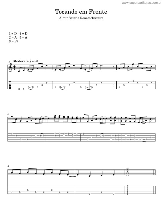 Partitura da música Tocando Em Frente – Almir Sater v.2