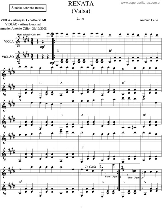 Partitura da música Renata