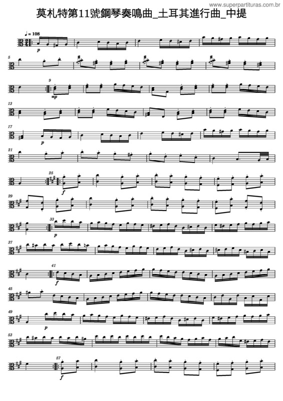 Partitura da música K. 331 Iii. Rondo Alla Turca For Viola – Wolfgang Amadeus Mozart K. 331 Iii. Rondo Alla Turca For Viola