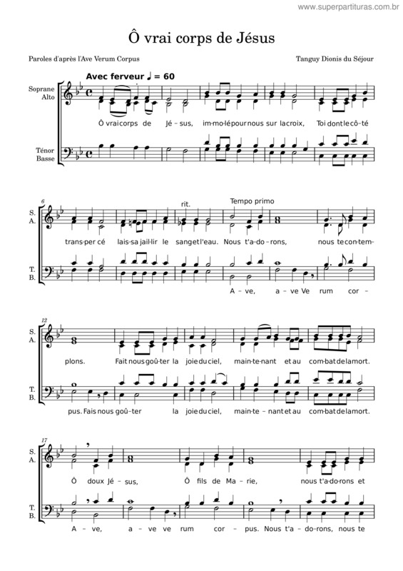 Partitura da música Ô Vrai Corps De Jésus