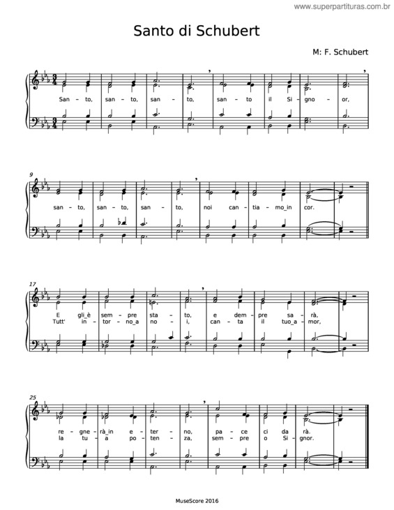 Partitura da música Santo – Franz Schubert