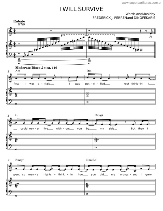 I Will Survive – Gloria Gaynor I Will Survive Bass Tabs