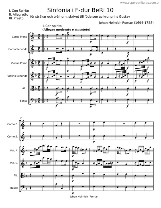 Partitura da música Sinfonia I F–Dur Beri 10 – Johan Helmich Roman
