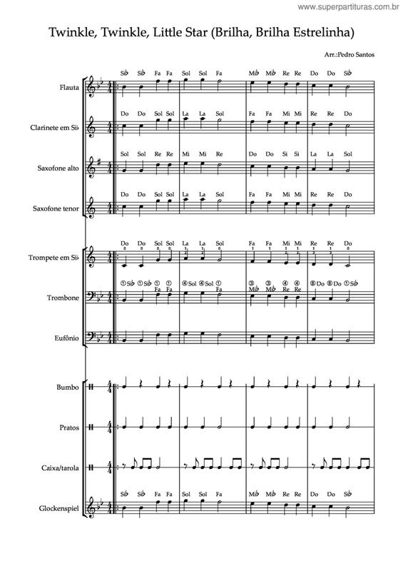 Bateria, Bombardino, Clarinete, Flauta, Glockenspiel, Saxofone, Trombone, Trompete / Infantil, Instrumental / Fácil