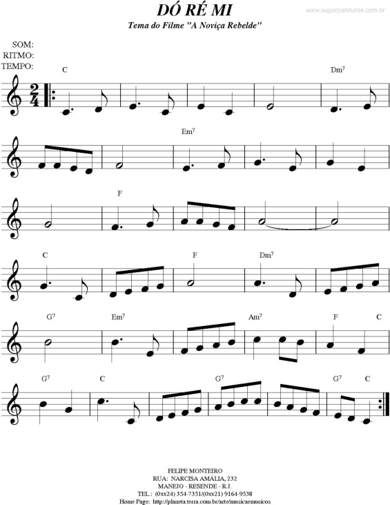 Partitura da música Dó Ré Mi (A Noviça Rebelde)