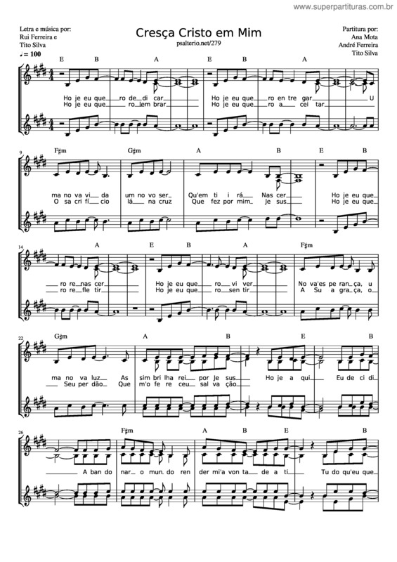 Partitura da música Cresça Cristo Em Mim v.2