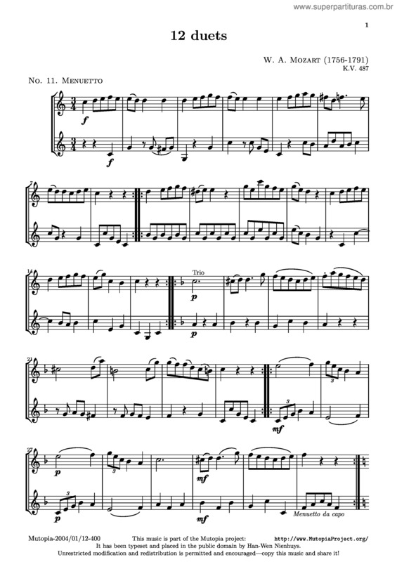 Partitura da música Menuetto v.2